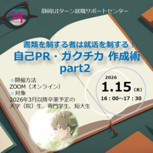 【受付中】2026/1/15(木)『自己PR・ガクチカ作成術Part3』New!!